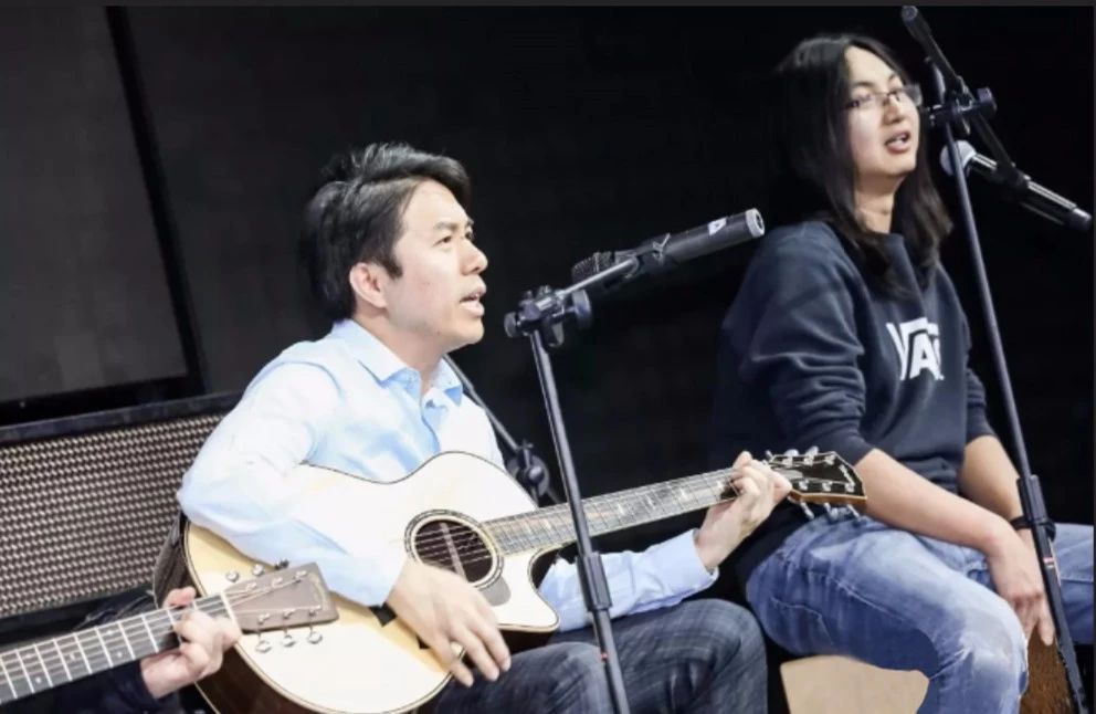 △2018年,戴科彬在猎聘年会上表演吉他弹唱《光辉岁月》
